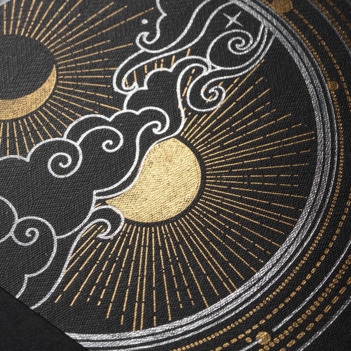 Con questa tecnica di stampa riusciamo a trasferire un film metallico su qualsiasi supporto senza utilizzare un cliché o uno stampo in ottone. Per risultati perfetti, usiamo primer appositi che tengono uniti la carta e la lamina scelta.